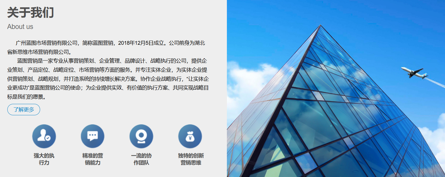 蓝图营销是一家专业从事营销策划、企业管理、品牌设计、战略执行的公司,提供企业策划、产品定位、战略定位、市场营销等方面的服务。并专注实体企业,为实体企业提供营销策划、战略规划,并打造系统的持续增长解决方案。协作企业战略执行,“让实体企业更成功”是蓝图营销公司的使命;为企业提供实效、有价值的执行方案、共同实现战略目标是我们的愿景。