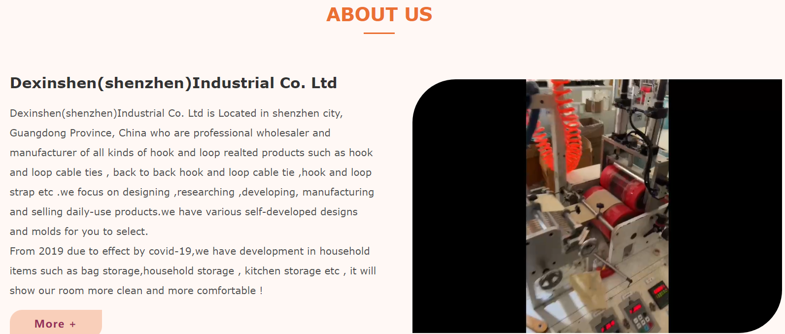 Dexinshen(shenzhen)Industrial Co. Ltd is Located in shenzhen city, Guangdong Province, China who are professional wholesaler and manufacturer of all kinds of hook and loop realted products such as hook and loop cable ties , back to back hook and loop cable tie ,hook and loop strap etc .we focus on designing ,researching ,developing, manufacturing and selling daily-use products.we have various self-developed designs and molds for you to select.