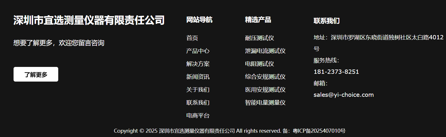 深圳市宜选测量仪器有限责任公司,是一家专注从事仪器仪表、安规测试仪等代理销售、服务为一体的技术服务企业。