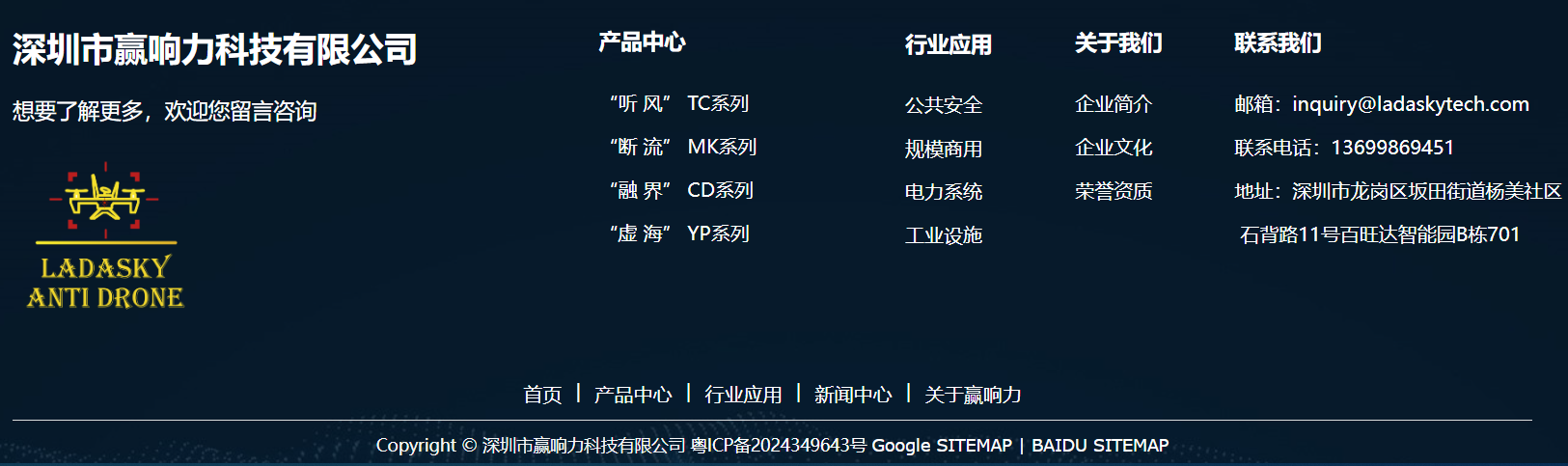 深圳市赢响力科技有限公司,是无人机防护领域的佼佼者。在高科技通信电子产品的全流程——设计开发、生产制造、销售和技术服务上都展现出卓越实力。 其核心的无人机安防设备,如探测仪、功放模块和增益天线等系列产品,拥有自主知识产权和外观专利,在技术创新方面拥有强大能力。经过多年沉淀,公司规模与管理、研发体系日臻完善,形成绝佳的创新智造环境,为无人机低空安防业务筑牢根基。