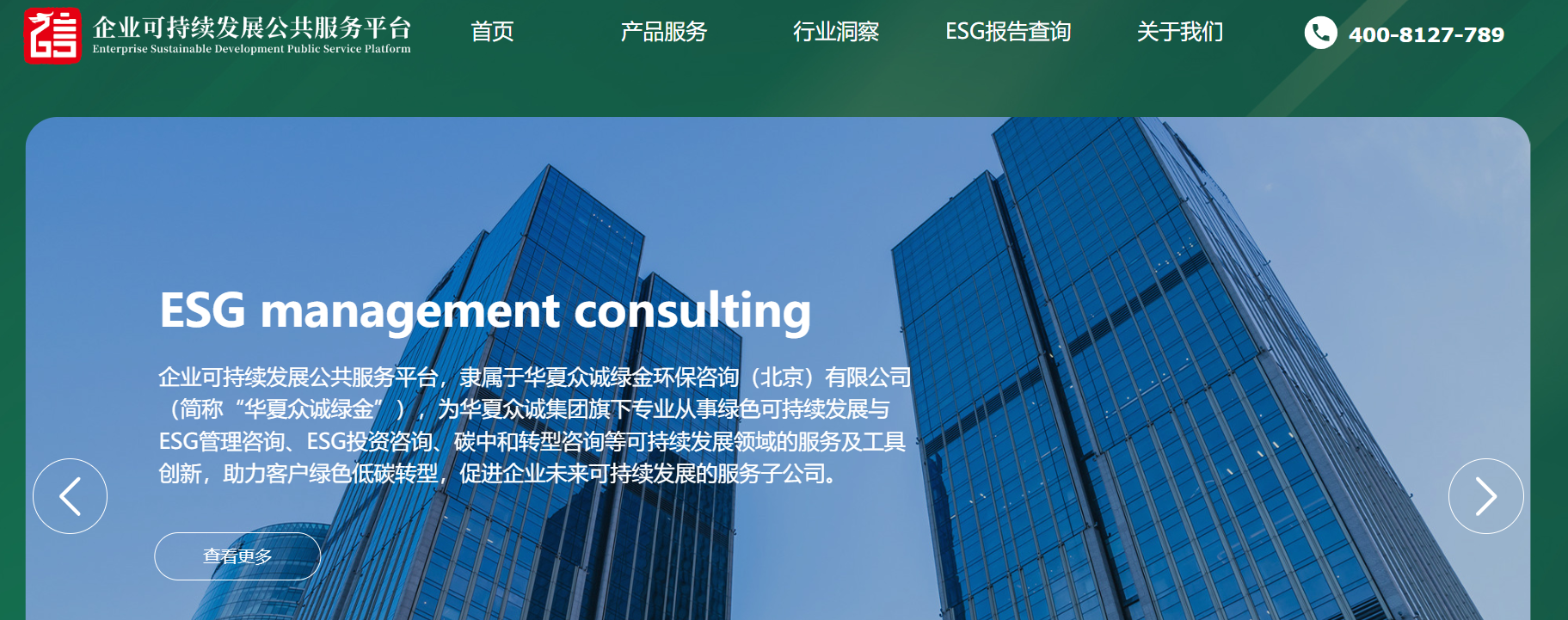 企业可持续发展公共服务平台,隶属于华夏众诚绿金环保咨询(北京)有限公司(简称“华夏众诚绿金”),为华夏众诚集团旗下专业从事绿色可持续发展与ESG管理咨询、ESG投资咨询、碳中和转型咨询等可持续发展领域的服务及工具创新,助力客户绿色低碳转型,促进企业未来可持续发展的服务子公司。