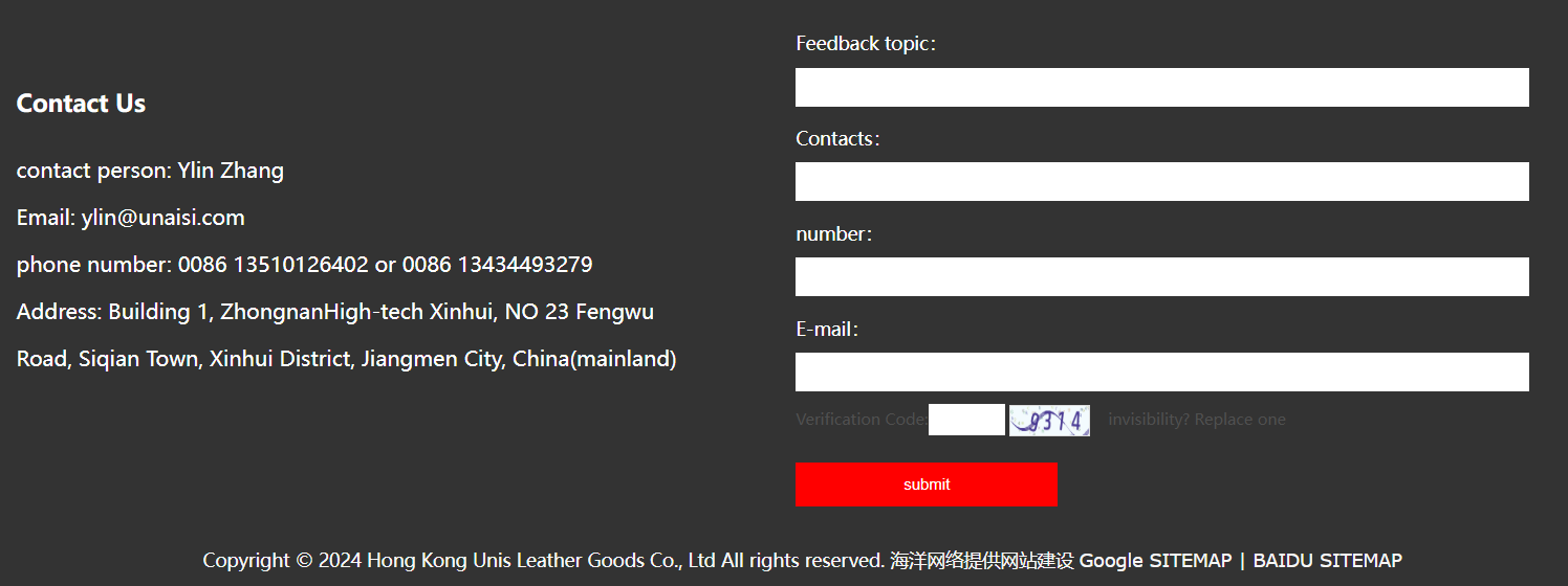 HongKong Unaisi Leather Goods Co., Limited与海洋网络签订网站建设