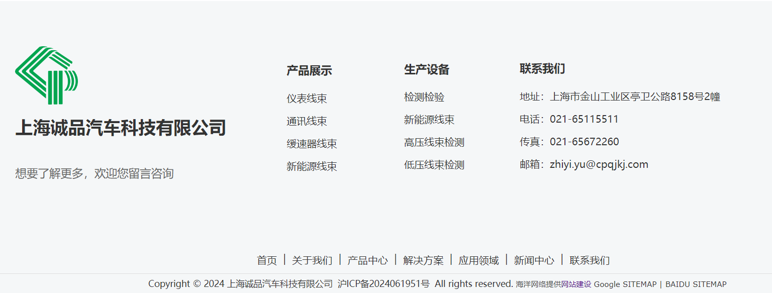 上海诚品汽车科技有限公司创建于2006年8月,专业从事汽车高低压线束的研发、生产、安装及相关的配套服务。公司被评为上海市“专精特新”高新科技企业,杨浦区科技小巨人称号企业,并通过ISO9001质量体系认证及IATF16949:2016体系认证。获得的实用新型专利43项,发明专利2项。