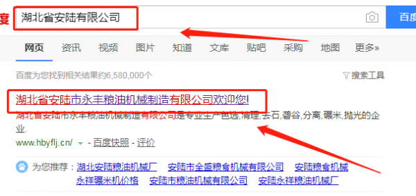 安陆永丰粮油机械制造有限公司与我司做网站推广项目