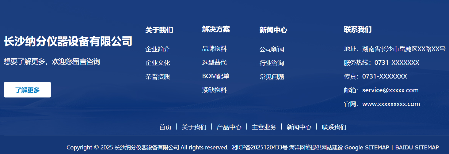 长沙纳分仪器设备有限公司与海洋网络签订网站建设服务