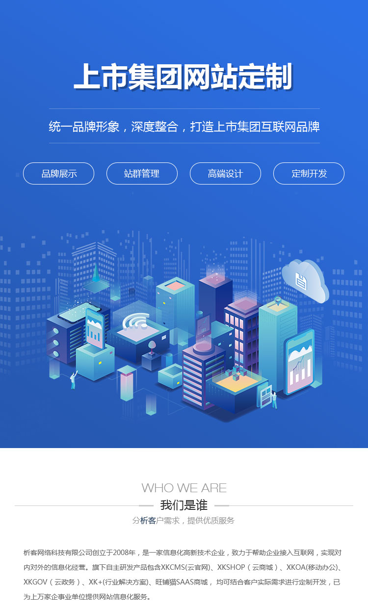 1. 品牌展示型:适合注重品牌形象、面向公众与投资者的企业,核心诉求是传递企业理念、展示实力与案例,打造专业、可信的品牌形象,无需复杂的交易功能,重点突出视觉设计与品牌传递;
